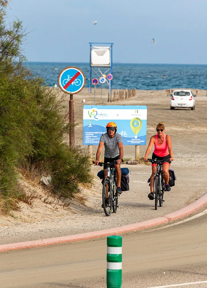 Des paysages des Alpes aux plages de la Méditerranée, ViaRhôna , cet itinéraire cyclable de 815 km, vous embarque le long du Rhône pour une aventure riche d’histoire(s), des Gallo-Romains à nos jours. Elle raconte l'épopée d’un fleuve qui a façonné sa vallée au fil des siècles, un récit qui prend vie dans les rencontres avec les artisans, les producteurs, les guides, les habitants et les souvenirs épiques des cyclotouristes venus en couple, en famille ou entre amis parcourir ses voies.