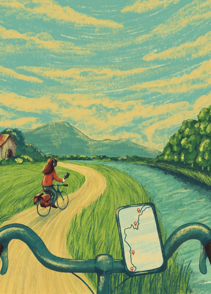 La Tête au-dessus du guidon” est un podcast géolocalisé accessible via l’application Karacal, spécialement conçu le long de l’itinéraire ViaRhôna.