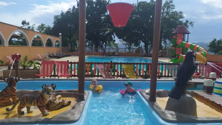 Sur place, piscine, pataugeoire ludique, mini-toboggan aquatique et solarium.