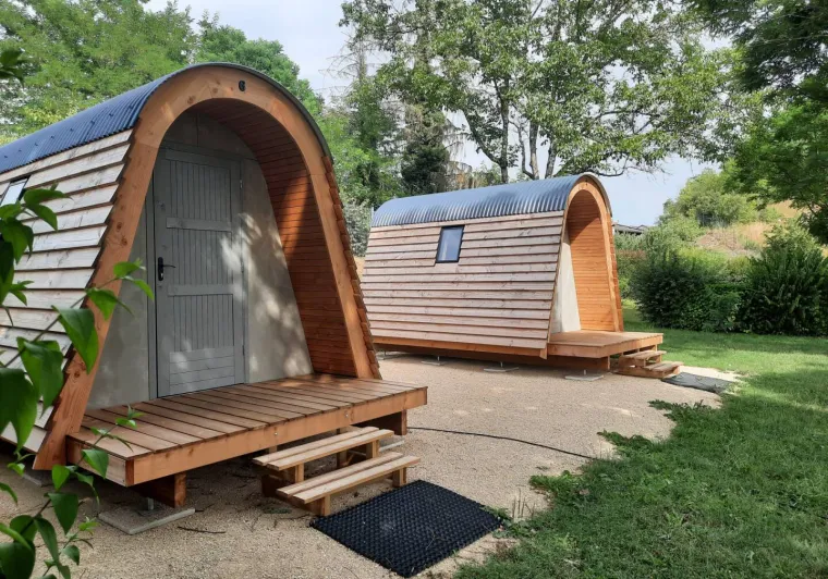 En plus de ses emplacements traditionnels, le camping La Rivoirette propose des hébergements insolites adaptés aux voyageurs en itinérance ou à ceux qui aiment voyager léger. Les pods en bois, petits cocons chaleureux au style cabane nordique, peuvent accueillir jusqu’à trois personnes. Les tentes lodges, idéales pour les duos, combinent quant à elles le charme du camping tout en garantissant un confort optimal.