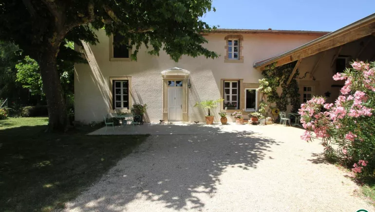 Dans la grande cuisine avec cheminée, vous vous régalerez de copieux petits déjeuners. Table d'hôtes sur réservation. Les jardins ombragés seront propices à la détente. 6 km de la sortie A7 Valence Sud.