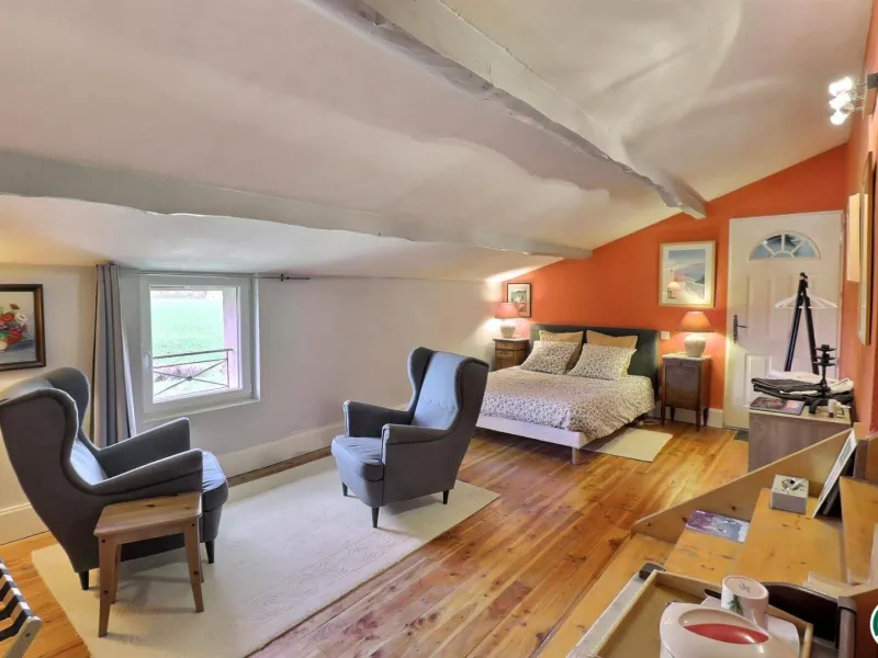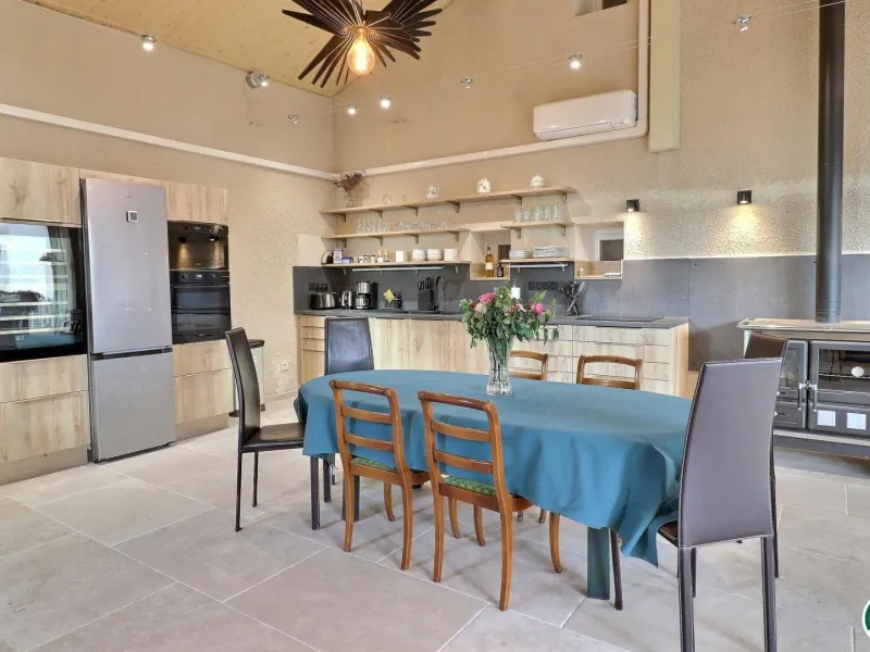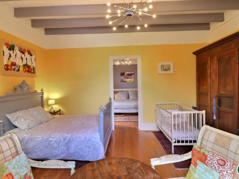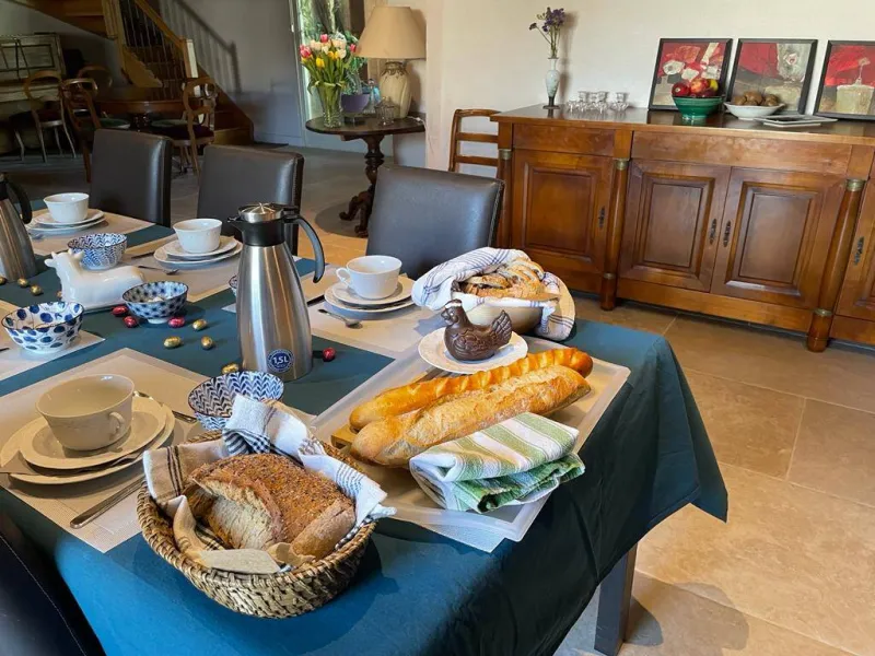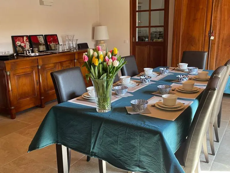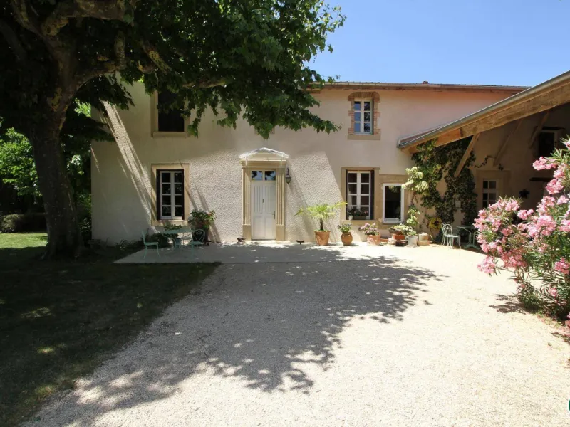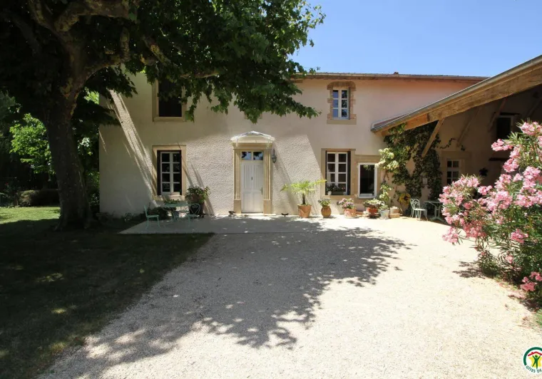Dans la grande cuisine avec cheminée, vous vous régalerez de copieux petits déjeuners. Table d'hôtes sur réservation. Les jardins ombragés seront propices à la détente. 6 km de la sortie A7 Valence Sud.2 golfs à proximité.