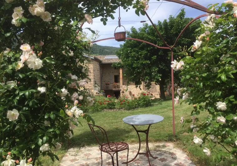Accès possible par l'intérieur, via une des pièces de vie où vous profiterez de la table de la maîtresse des lieux et d'un service de petit-déjeuner. Terrasse avec salon de jardin et piscine commune. Parking privé, télésurveillance dans la propriété. Idéalement située au calme pour détente et promenade bucolique. La propriétaire des lieux propose des massages bien-être.Possibilité de location des 3 chambres en même temps, ou possibilité de louer à la chambre.