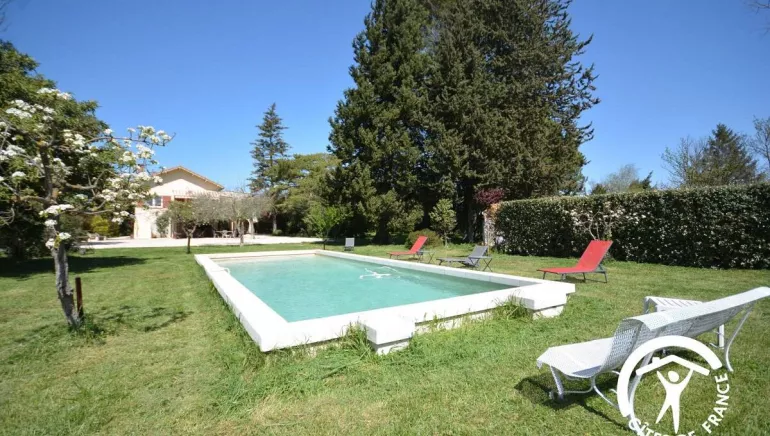 La piscine commune est protégée par alarme (10x4m, profondeur progressive de 1.20m à 1.50m) et ouverte de début juin à fin septembre.