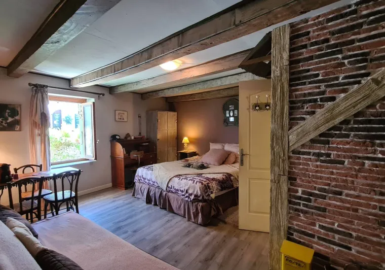Chambres d'hôte proposant 3 chambres dont une dans un chalet indépendant. Chalet indépendant "Le Mazot" : au rez-de-chaussée espace cuisine-salon-séjour. Au 1er étage : 1 chambre (1 lit 2 personnes en 140x190 cm) avec salle d'eau et WC privatif. Chambres dans la maison des propriétaires : La Mésange : 1 lit 2 personnes en 160x190 cm et salle de bain privative. La Fauvette : 1 lit 2 personnes en 160x190 cm. Salle de bain privative sur le pallier. WC commun avec l'autre chambre. Petit-déjeuner servi dans la pièce familiale avec salon. TV dans chacune des chambres. Stationnement privé sur la propriété. Christelle et Yannick vous ouvrent les portes de leurs chambres d'hôtes plutôt atypiques ! Soucieux de l'environnement, amoureux de la nature, "Les Inséparables", c'est uniquement construit avec des matériaux de récupération, mais avec goût. Une maison pleine de charme, bordée par les prés, entourée d'animaux, chiens, chats, et tortues, sous l'œil de la "Dent du Chat". Dans l'ancien mazot ou chez les propriétaires, tout est réuni pour passer un agréable séjour.Cet établissement vous intéresse ? Rendez-vous sur leur site pour réserver ou en savoir plus.