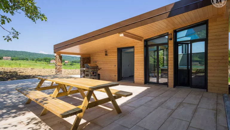 Maison individuelle sur 3 niveaux comprenant au rez-de-chaussée : une entrée avec buanderie et local à vélos. 1er étage : cuisine-séjour-salon, poêle à granulés (recharge automatique), enceinte Bluetooth, 3 chambres dont 1 avec salle d'eau privative (1 lit 2 personnes / 2 lits 2 personnes 160 x 200 et un lit à barreaux pour bébé), salle d'eau avec WC (accessible pour personne à mobilité réduite). 2ème étage : un salon avec kitchenette, avec billard et babyfoot, TV connectée, poêle à bois, 3 chambres dont 2 avec une salle d'eau commune (2 lits 2 personnes / 2 lits superposés 2 personnes, 1 lit 1 personne), une salle d'eau (2 vasques) avec WC, WC séparé. 2 balcons. Terrain (aire de pétanque, table de ping-pong). Espace bien-être (spa 7 places, douche et WC) à l'extérieur du gite. Local à vélos de 16 m². Prise type Green Up pour véhicule électrique.