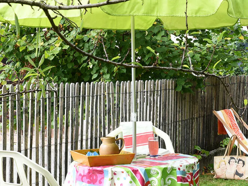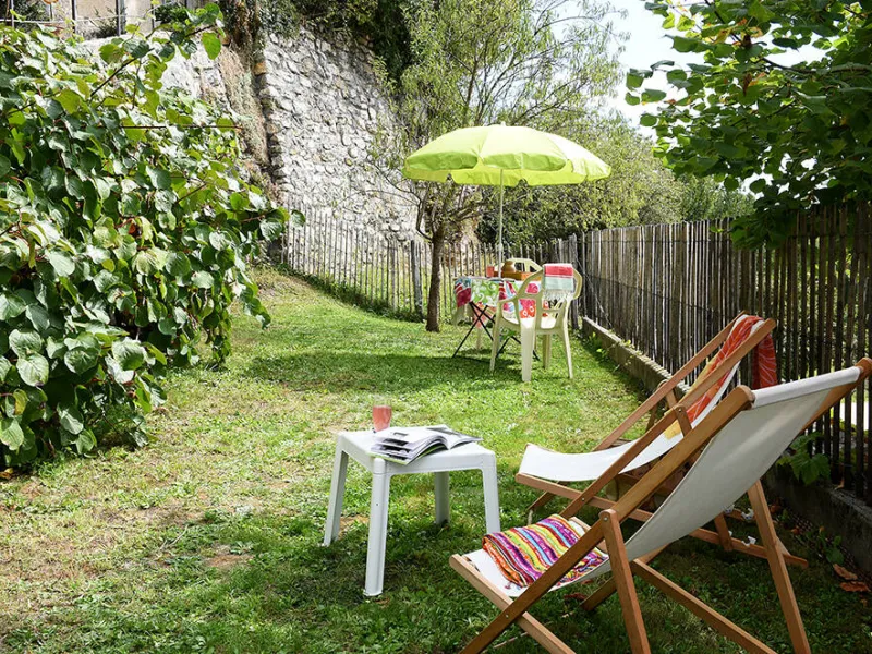 Le jardinet privatif est en face de l'appartement et est équipé de chaises longues/table de jardin et chaises/parasol/lampe table extérieur. Une plancha électrique est à votre disposition dans le jardin.