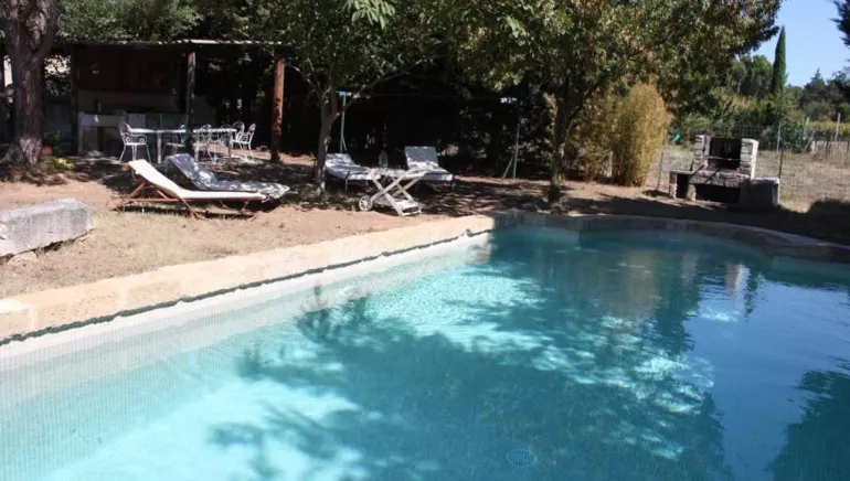 -Extérieur : profitez de la piscine (4m x 8m) partagée avec les propriétaires et de la cuisine d’été pour des instants conviviaux.