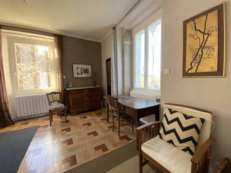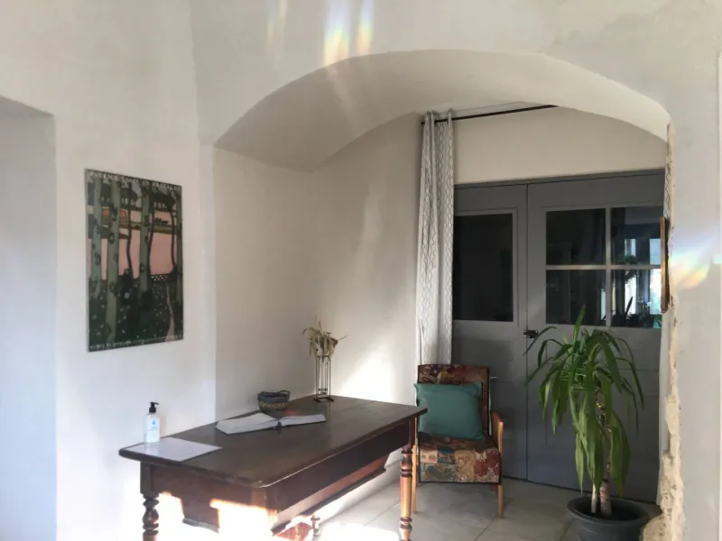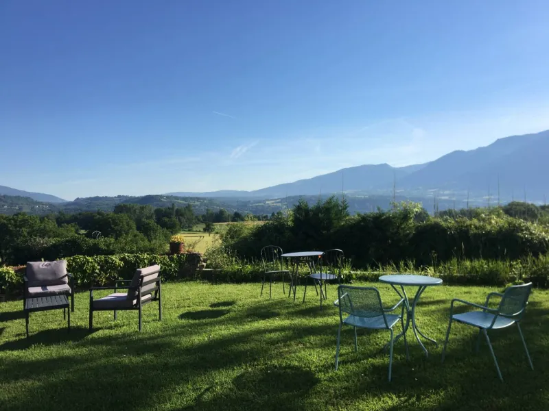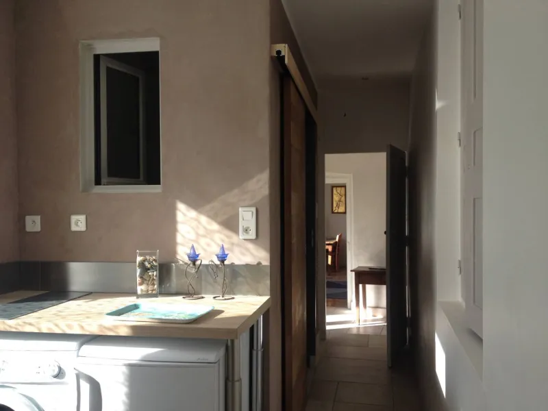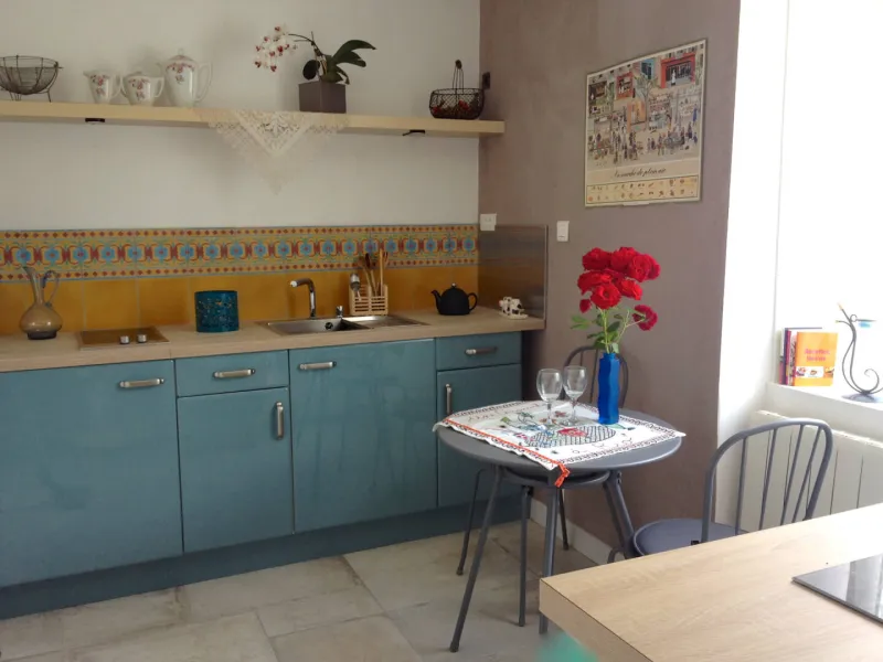 Le gîte est aménagé au rez-de-chaussée avec une entrée indépendante, un grand hall qui dessert une grande chambre de 20 m² avec un lit de 160cm, une pièce attenante avec 2 lits d'appoint simples, une cuisine équipée et une salle de bain (douche, lavabo et wc).Terrasse avec vue, garage à vélos et parking réservé aux hôtes.