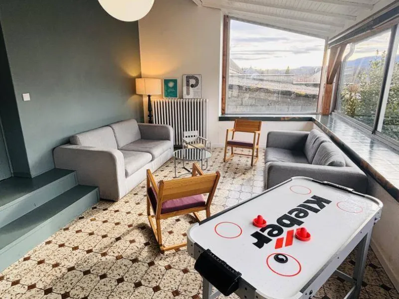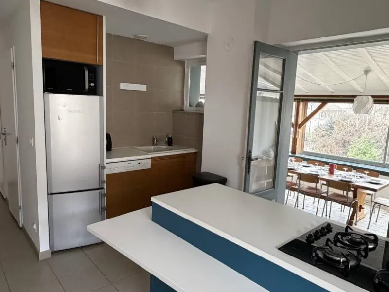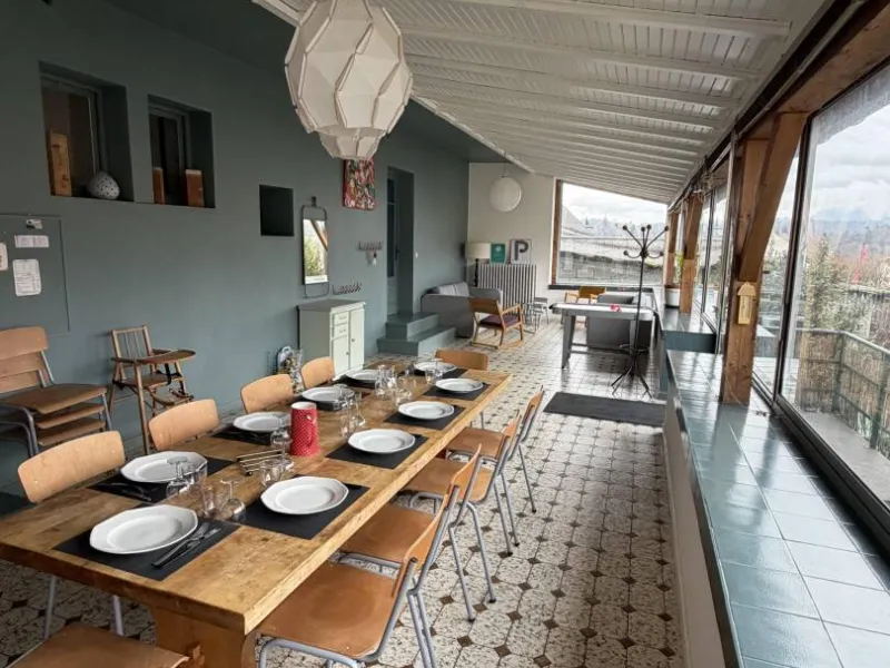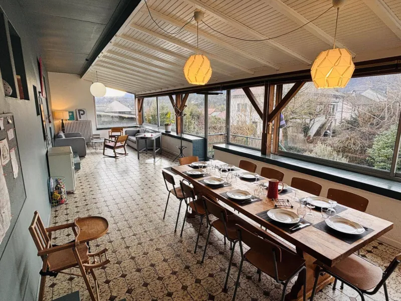 Grand espace de vie de 50 m2 avec vue et grande tablée, cuisine indépendante, 2 salles d’eau fonctionnelles,