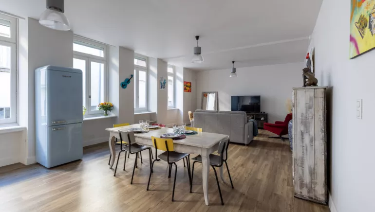 Appartement au calme absolu dans l'hyper centre de Vienne, idéalement situé (à proximité des restaurants, musée archéologique de Saint-Romain-en-Gal) et à 7 minutes à pieds du Théâtre Antique, et à 100 mètres de la ViaRhôna. Local à vélo fermé avec prise électrique, parking à proximité.