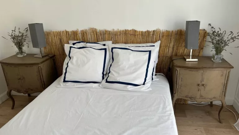 La chambre comprend 1 lit 140x190 avec commode, table et lampes de chevet.