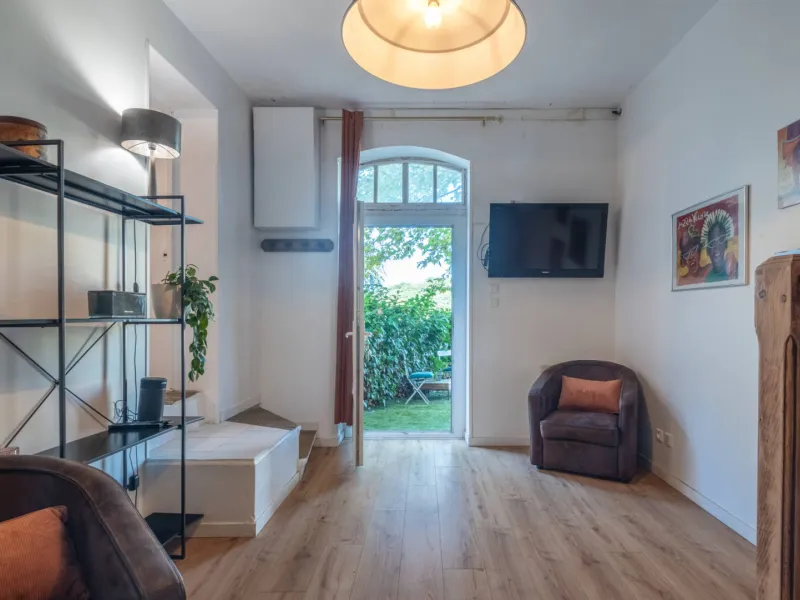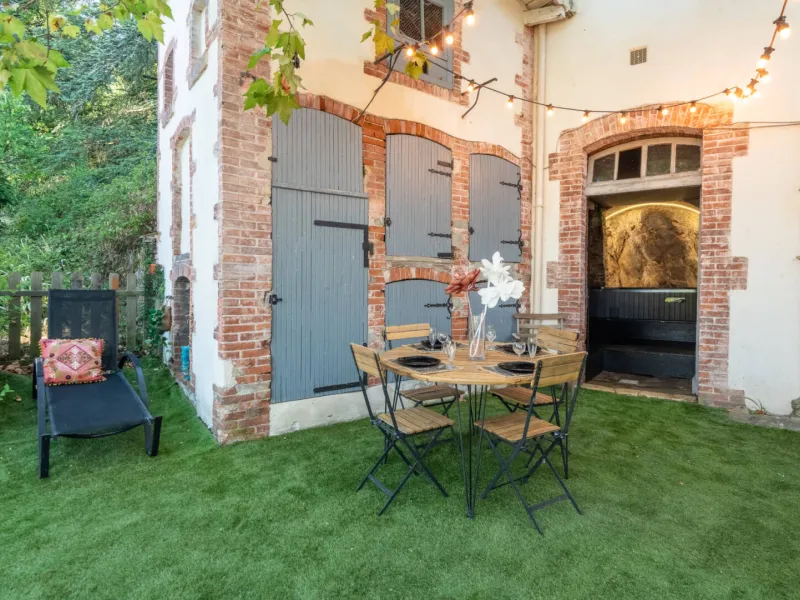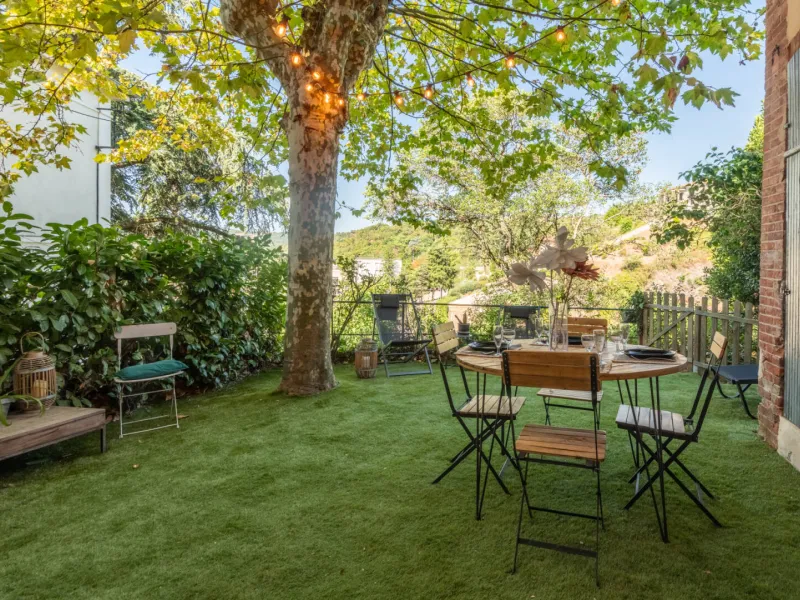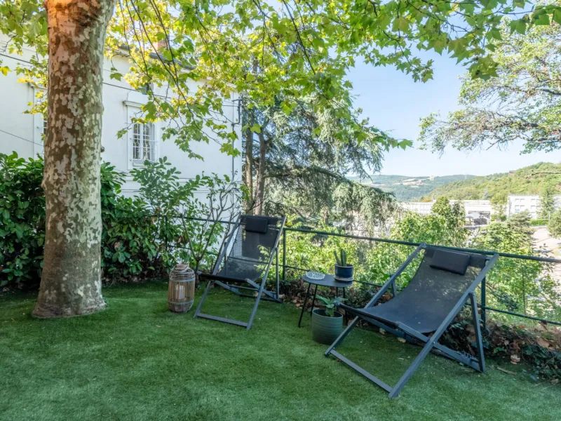 Extérieur : jardin arboré et sécurisé, coin guinguette chic, transats et barbecue, vue dégagée sans vis-à-vis.
