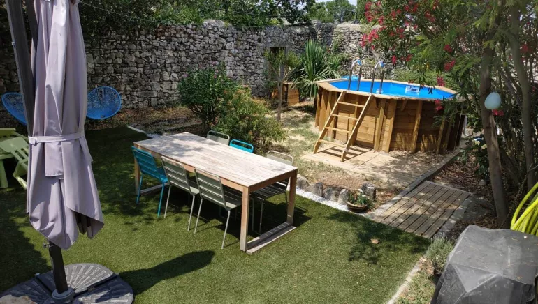 Maison avec 4 grandes chambres, chacune équipée d'une salle d'eau et WC. Une cinquième chambre possible avec canapé convertible. La maison est pourvue d'un jardin et d'une piscine
