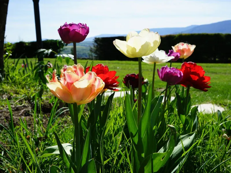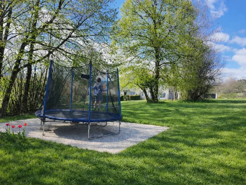 • Grand jardin avec vue à couper le souffle sur les montagnes du Bugey