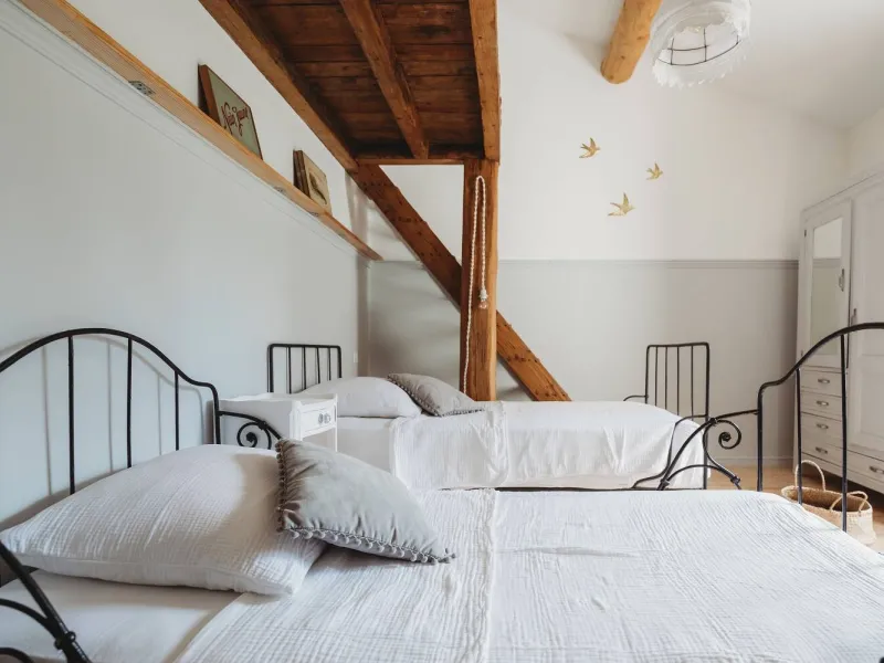 - Chambre Sport : le paradis des enfants, avec 4 lits 90x190cm dont 2 en mezzanine protégée par un filet.