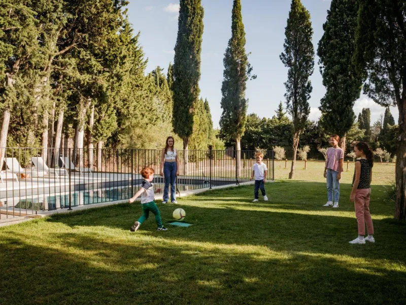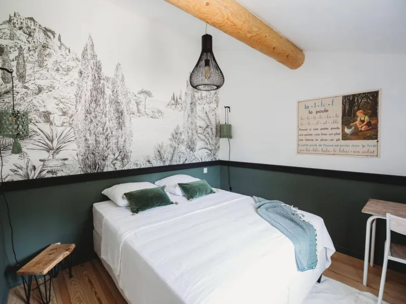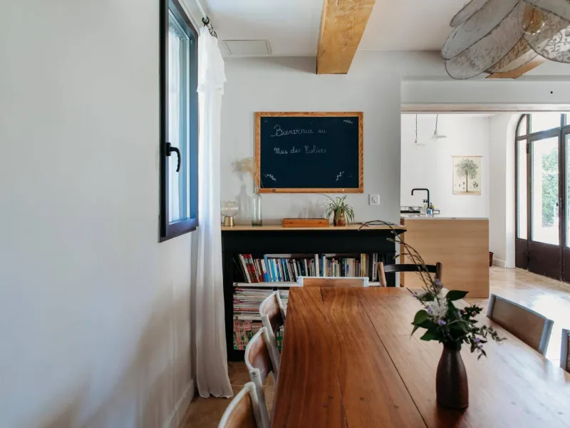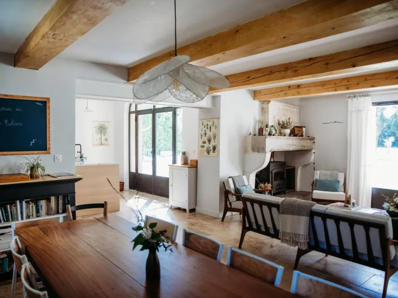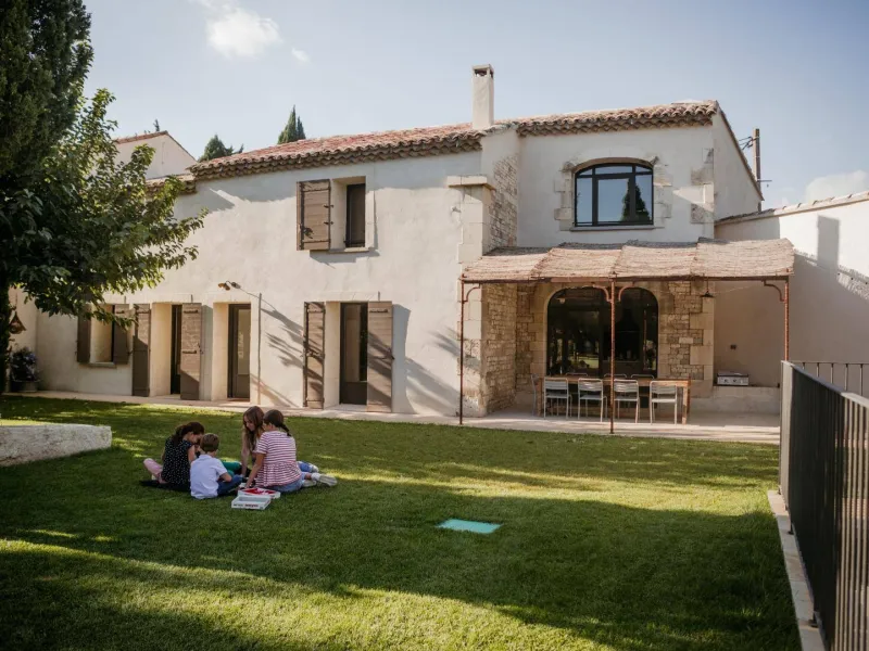 Situé entre Avignon et Alpilles, le Mas des Écoliers, qui date du XIXème siècle vous accueille en famille ou entre amis pour des séjours inoubliables. Rénové en 2021, le Mas vous propre 5 chambres aux noms de matières scolaires, équipées de sanitaires, salon au coin du feu, piscine et jardin privatifs. La décoration raffinée, créée par Marie la propriétaire à partir de mobilier chiné et remis au goût du jour, ne manquera pas de vous séduire et de vous rappeler des souvenirs d'école. Un vrai paradis pour petits et grands !Le Mas est mitoyen à l'habitation des propriétaires, mais sans vis-à-vis. Au RDC, le gîte est composé de :