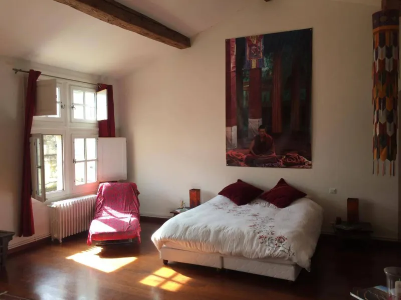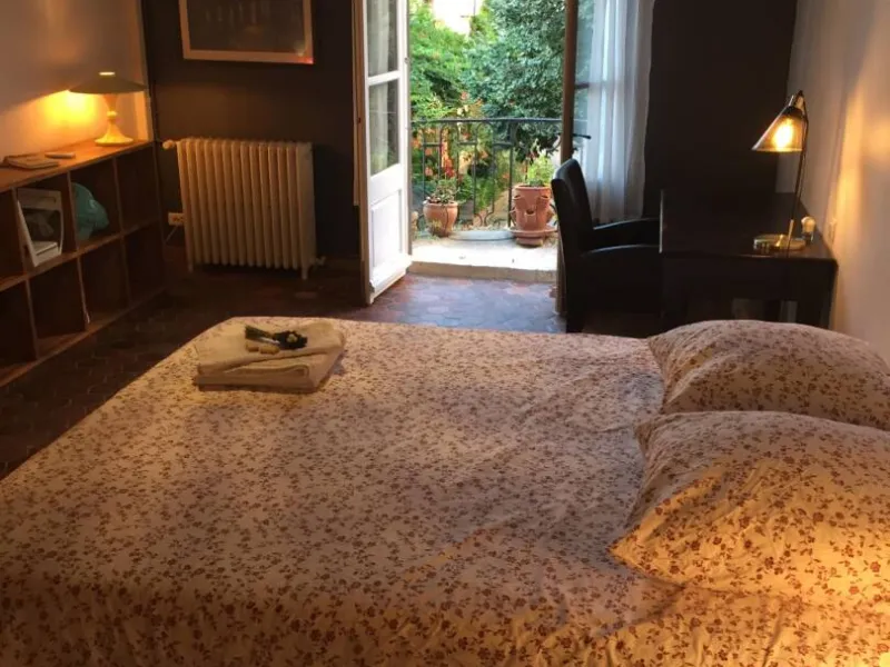 Une décoration inspirée par le voyage qui vous plonge dans une belle sérénité en plein cœur du centre ville et à deux pas de tous les sites d'intérêts et expositions L a maison est située sur une place piétonne sans voiture à 50 mètres des Arènes tout en étant très calme et à l'écart de l'agitation estivale . (Un badge d'accès au centre ville peut être mis à disposition pour faciliter les arrivées et départ avec bagages). Votre hébergement se situe au 2eme étage de la maison (escaliers) et qui vous est dédié de manière privative . Il comprend une très grande chambre au grands volumes (45m2) et une salle de bain/toilettes privative . Un adorable chat viendra probablement vous faire quelques câlins dans les zones communes (salon) mais il est interdit dans les étages et chambres . Les jours d'hiver , d'automne ou de printemps la cheminée dans le salon viendra vous délivrer son doux crépitement , cheminée pour le plaisir qui vient compléter un chauffage central efficace . Pour les cyclistes ou motard , un parking privé et couvert à proximité immédiate peut accueillir vos vélos ou motos.Arlésien et propriétaire habitant cette maison depuis 17 ans , je vous indiquerai les endroits à connaitre dans notre belle ville et région que j'affectionne particulièrement. Je vous donnerai tous les conseils utiles pour randonner ou parcourir en vélo/moto/auto ou à pied notre région.