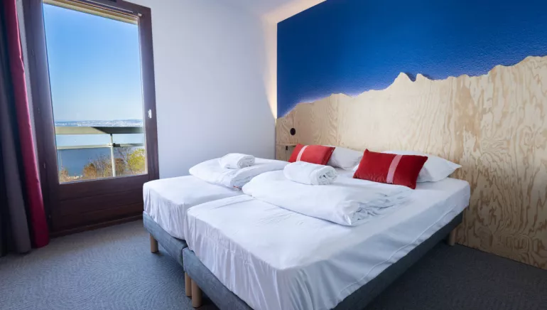 Pour un séjour en famille, l'établissement propose des chambres de 40m2 équipées de 4 lits et un tarif dégressif sur la chambre est proposé en fonction du nombre de personnes. Une gratuité sur l’hébergement est appliquée pour les moins de 2 ans.