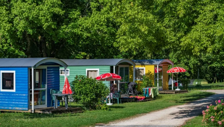 Envie de nature, de repos et de convivialité? Notre équipe mettra tout en œuvre pour que vous passiez un agréable séjour. Vous y trouverez une offre diversifiée de prestations locatives. Si vous optez pour le camping, nos emplacements sont grands (de 80 à 120m²), arborés, calmes, avec ou sans électricité, en bordure de rivière ou non. Si vous préférez la location, nos chalets (50m² en duplex ou 35m²) mobil-homes (de deux ou trois chambres), roulottes (quatre) ou chalets toilés sont tous aménagés avec confort. A l'intérieur du camping, les enfants peuvent partager de bons moments sur l'aire de jeux, occuper les allées en toute liberté avec leurs vélos, courir après un ballon... Vous pouvez également profiter du lac et de sa plage, à deux pas du camping, en toute quiétude avec la baignade surveillée en saison estivale. Le snack-bar et la buvette de la plage sont à votre disposition dans la journée et en soirée pour partager des moments en famille ou entre amis. Un coin bibliothèque vous est réservé avec un accès wifi gratuit. Pour les plus jeunes, un kit bébé comprenant un lit parapluie et une chaise haute vous est prêté sur réservation. Pour les personnes à mobilité réduite un sanitaire est adapté. Location de draps ( drap housse, drap plat et taie d'oreiller).