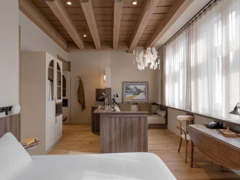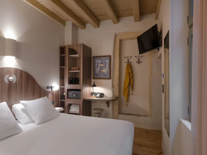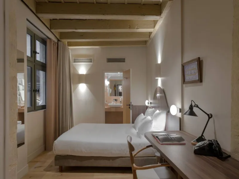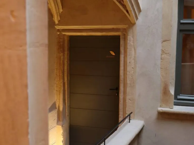Sa cour intérieure a retrouvé toute sa splendeur d’époque, tandis que plusieurs éléments remarquables ont été restaurés, comme des culots sculptés aux blasons attribués à Estienne Guerrier, hôtelier dès le 15ème siècle. Certaines chambres dévoilent même des peintures murales du 15ème siècle, mises au jour lors de fouilles archéologiques et restaurées avec soin.