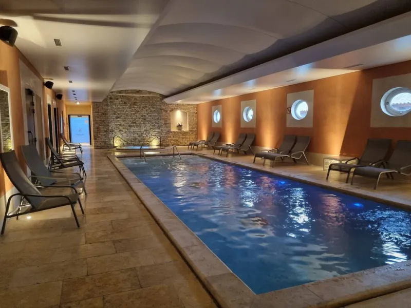 Le clou de ce lieu privilégié ? Un merveilleux Spa réunissant piscine intérieure, jacuzzi, sauna, hammam, douche chromothérapique, salle de fitness, lits hydromassants, cabines de massages doubles et individuelles, jacuzzi privatif, soins esthétiques Hormeta, tisanerie et salle de repos
