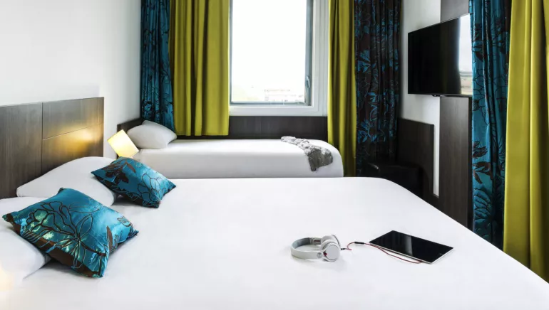 Les chambres sont toutes insonorisées et climatisées avec une ambiance contemporaine, parfaite pour un séjour seul ou en famille.