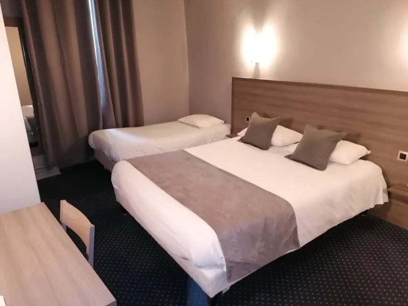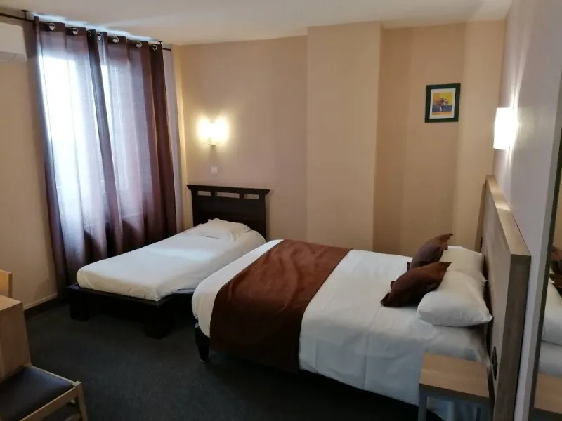 Une fois garé au parking privé, vous pourrez découvrir l'une des 28 chambres qui sont desservies sur 3 étages par un ascenseur.Spacieuses et insonorisées, elles vous offriront tout le confort nécessaire à un séjour réussi : elles disposent ainsi d'une salle de douche ou bain, d'un bureau, d'une télévision. Un accès Wifi est disponible gratuitement.