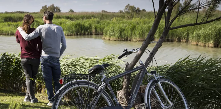 L’itinéraire est aménagé à partir du sud d’Arles au pont Van Gogh. Depuis ce pont, belle piste cyclable en enrobé qui traverse les marais jusqu’à l’écluse de Barcarin. Après les éoliennes, passez sous le pont en direction du Bac de Barcarin et suivez la signalétique ‘’Plage