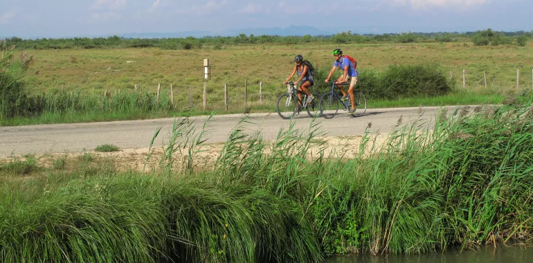 Entre les étangs et le Grand Rhône, ce circuit vélo intimiste entraîne le cyclotouriste au cœur d’une Camargue domestiquée. Canaux, cultures, architecture, élevage… Tout le parti que l’homme a su tirer de cet espace unique défile ainsi à portée de regard. Depuis le Sambuc, hameau typique avec ses maisons basses, l’itinéraire découvre la richesse des aménagements hydrauliques. De part et d’autre de petites routes, l’on aperçoit les champs de riz et les pâturages où paissent les traditionnels chevaux camarguais et les taureaux.