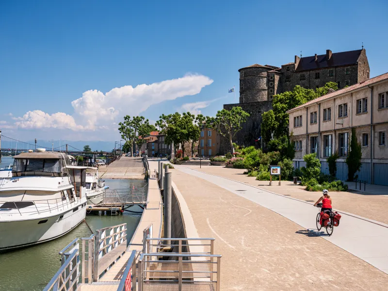 Très belles pistes cyclables qui longent le Rhône avec de beaux aménagements permettant d'observer la riche biodiversité qu'abrite le Rhône. Certains endroits sont même aménagés de manière ludique pour les plus petits. Des panneaux explicatifs bordent à plusieurs reprises le chemin : un bon plus ! Attention à bien remplir vos gourdes à nouveau, car pas de point d'eau facilement accessible. Sinon je n'ai pas eu le temps de m'arrêter à Tournoi-sur.Rhône mais de ce que j'ai vu, la ville vaut le détour !