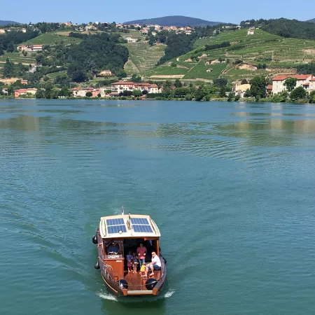Une journée inoubliable ! Partez en bateau avec votre vélo depuis Tournon-sur-Rhône, découvrez le Rhône et ses côteaux, passez une écluse, revenez en vélo par la Viarhôna pour aller visiter la Cité du Chocolat de ValRhôna avec dégustation, pour 2 personnes.