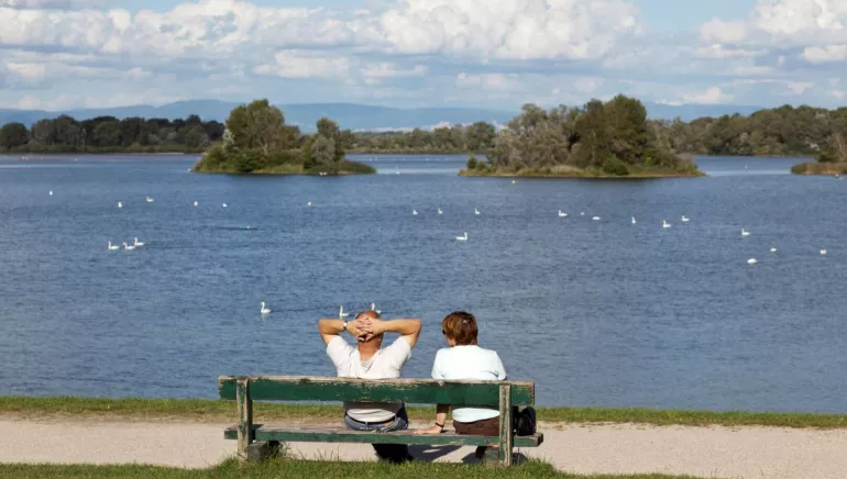 Son plan d'eau de 350 hectares et ses plages offrent de belles baignades.