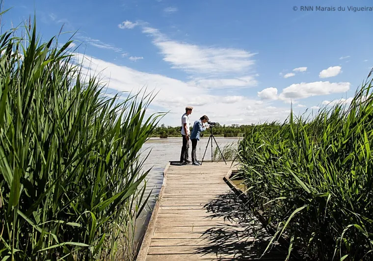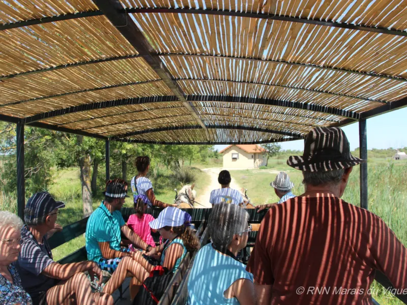 Aux Marais du Vigueirat, on trouve plus de 3 500 espèces animales et végétales, 300 espèces d’oiseaux et 5 manades de taureaux et chevaux, si spécifiques à la Camargue. En autonomie sur les sentiers de l’Etourneau, avec un guide en balade à cheval, en calèche ou à pied, le visiteur prendra le temps de découvrir la faune et la flore. Un guide naturaliste vous emmènera en minibus électrique jusque dans le cœur de la réserve naturelle, pour aller ensuite observer les oiseaux à la longue-vue depuis différents observatoires.Une application numérique et des livrets d’interprétation au format papier sont proposés gratuitement et permettent de donner un complément d’informations sur les milieux naturels et les points d’intérêt du site. Des sorties thématiques sont proposées tout au long de l’année.