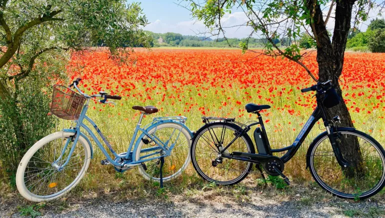 Partez à la découverte des célèbres vignobles de Châteauneuf-du-Pape ou des Dentelles de Montmirail. Admirez au fil d'une balade sur la Via Venaissia ou la Via Rhôna les magnifiques paysages que nous offre la Provence. Nous avons créé des itinéraires à télécharger gratuitement sur votre smartphone. Les vélos sont loués avec casque, sacoche guidon, kit de réparation en cas d'avaries, porte gourde et un support smartphone. Service de livraison et retrait des vélos possible. Vous souhaitez être autonome pendant votre journée à vélo ? Nous proposons des paniers repas avec des produits locaux . Plus d'infos 06.84.98.47.14