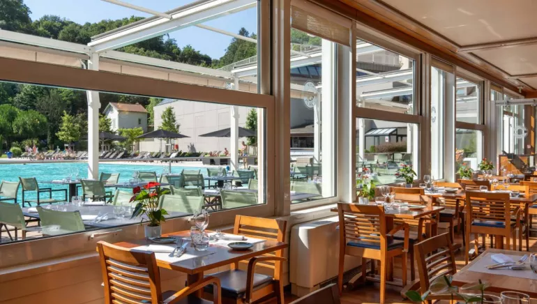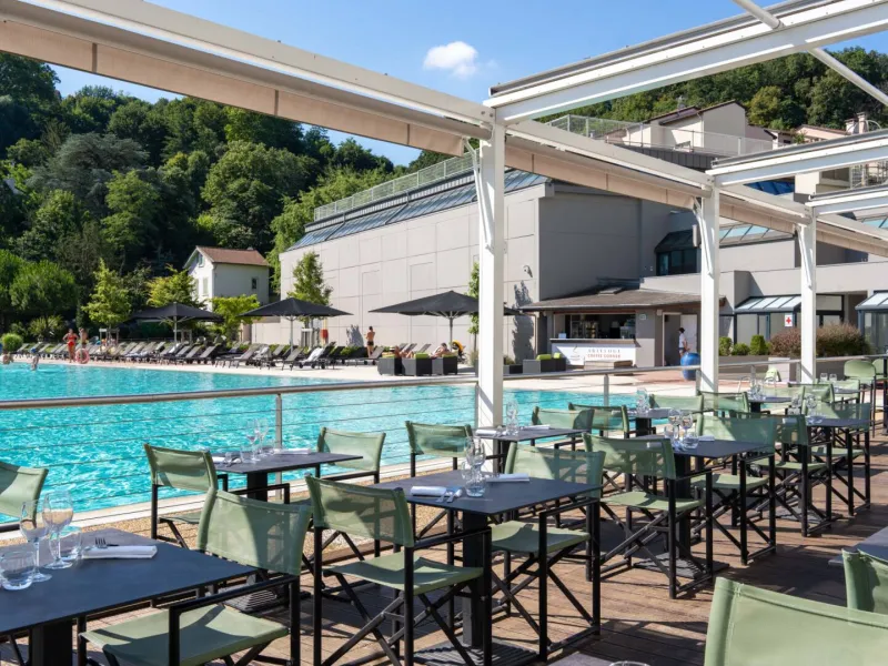 Aux beaux jours, profitez de l’ambiance exceptionnelle de la terrasse en bord de piscine olympique !