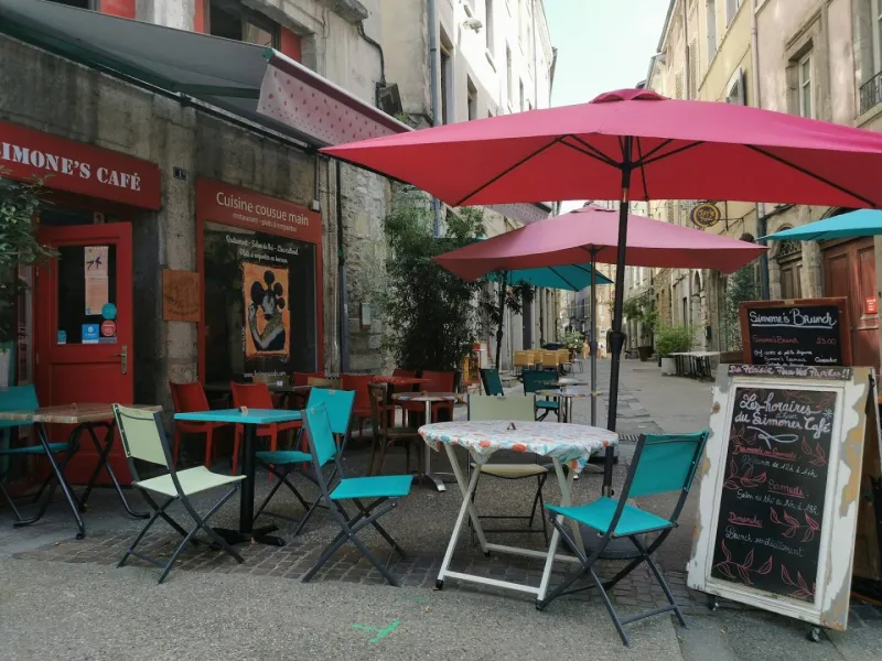 Le Simone’s café propose une cuisine végétarienne de saison avec des alternatives sans gluten et sans lactose. Chaque semaine un menu unique qui change en fonction du marché, avec une entrée, une assiette complète composée et un choix de desserts simples mais maison. Simone fait la part belle au végétal et introduit de la rawfood dans son menu.Appréciez également la jolie sélection de boissons : jus de fruits producteur, bières bio artisanales, vins bio majoritairement , thé et tisanes et boisson maison, lattés végétaux …