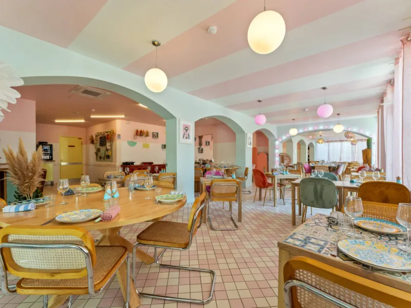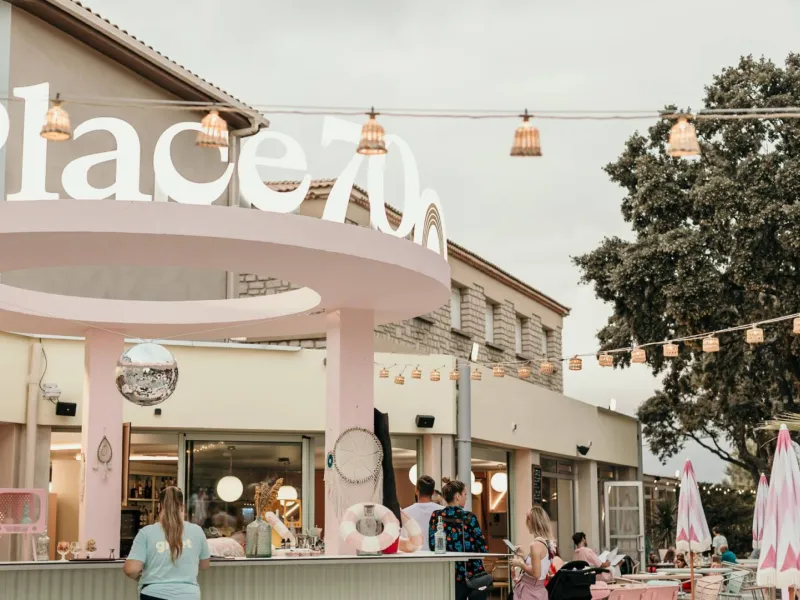 À 10 min du Pont du Gard, Place 70 est un lieu à vivre : bar à cocktails & tapas le soir, cuisine maison et ambiance seventies (boules disco, couleurs pop). Grande terrasse, soirées et espaces privatisables pour groupes, pro & évènements.Nouvelle star du site : la Chapelle 70 — décor rétro « Las Vegas » pour cérémonies, shootings et mariages, avec capacités réception jusqu’à 200 assis / 300 debout et hébergements sur place.