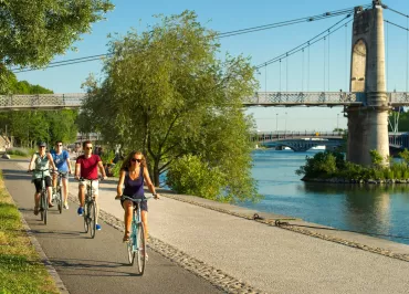 Destination préférée des city-breakers, Lyon, temple de la gastronomie, est inscrite au Patrimoine Mondial de l’UNESCO. C’est à vélo que vous découvrirez les 2 000 ans d’Histoire de cette ancienne capitale des Gaules. ViaRhôna prend alors, avec ce tronçon, tout son sens de «Voie des civilisations». L’itinéraire chemine au cœur d’un territoire riche des multiples témoignages de la navigation fluviale.